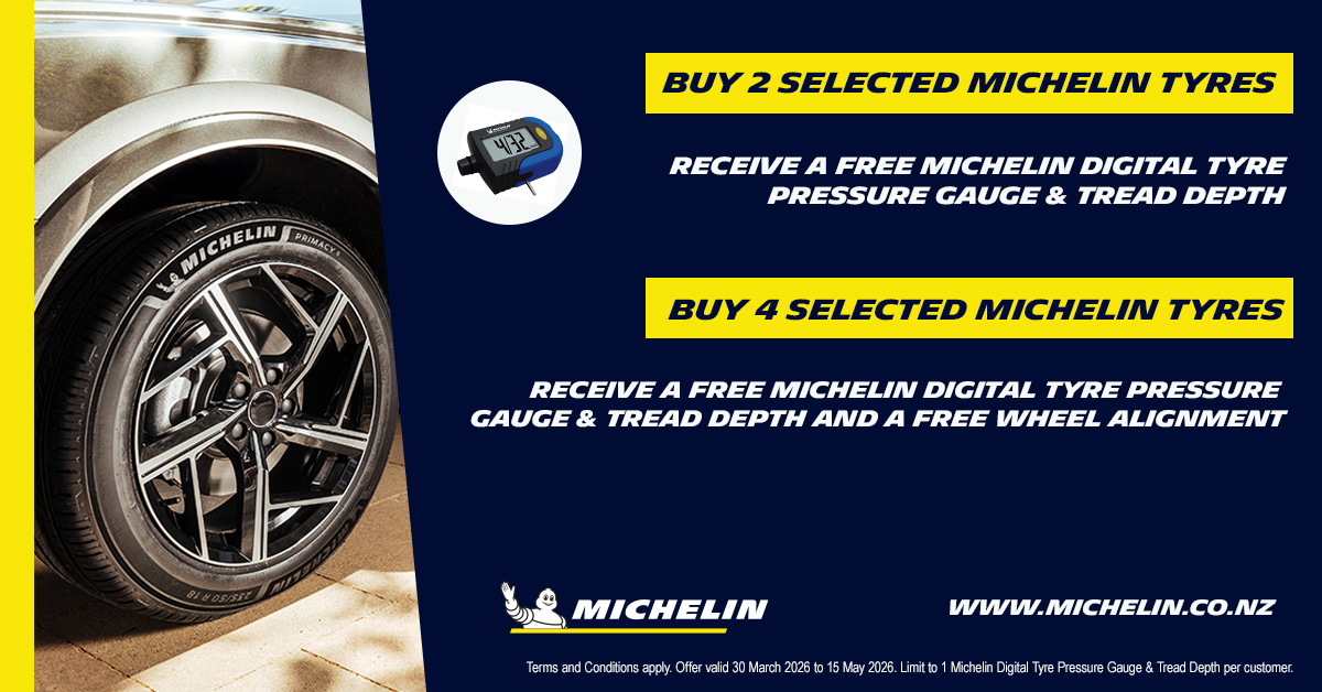 Receive a FREE Michelin Digital Tyre Pressure & Tread Depth Gauge.